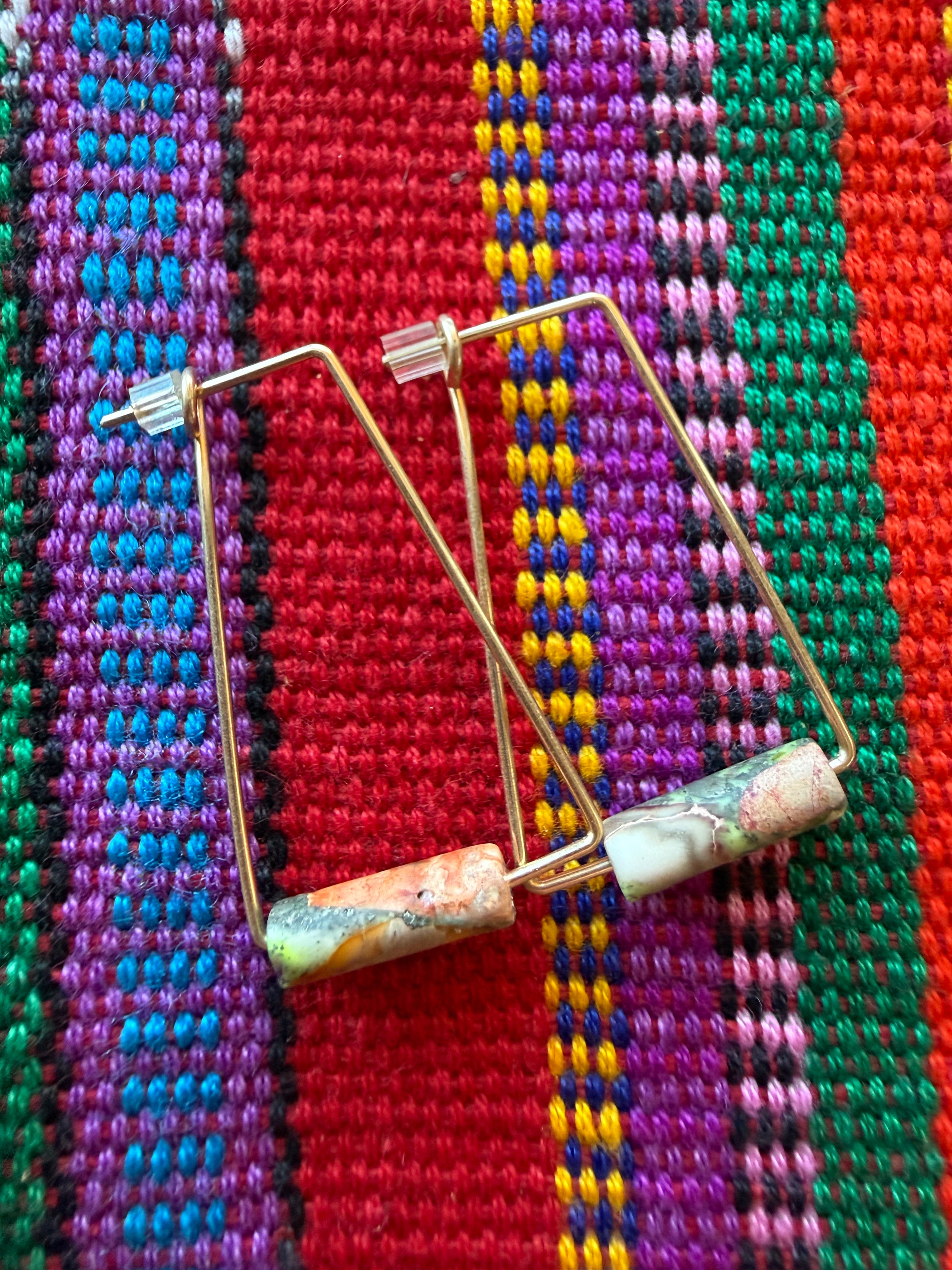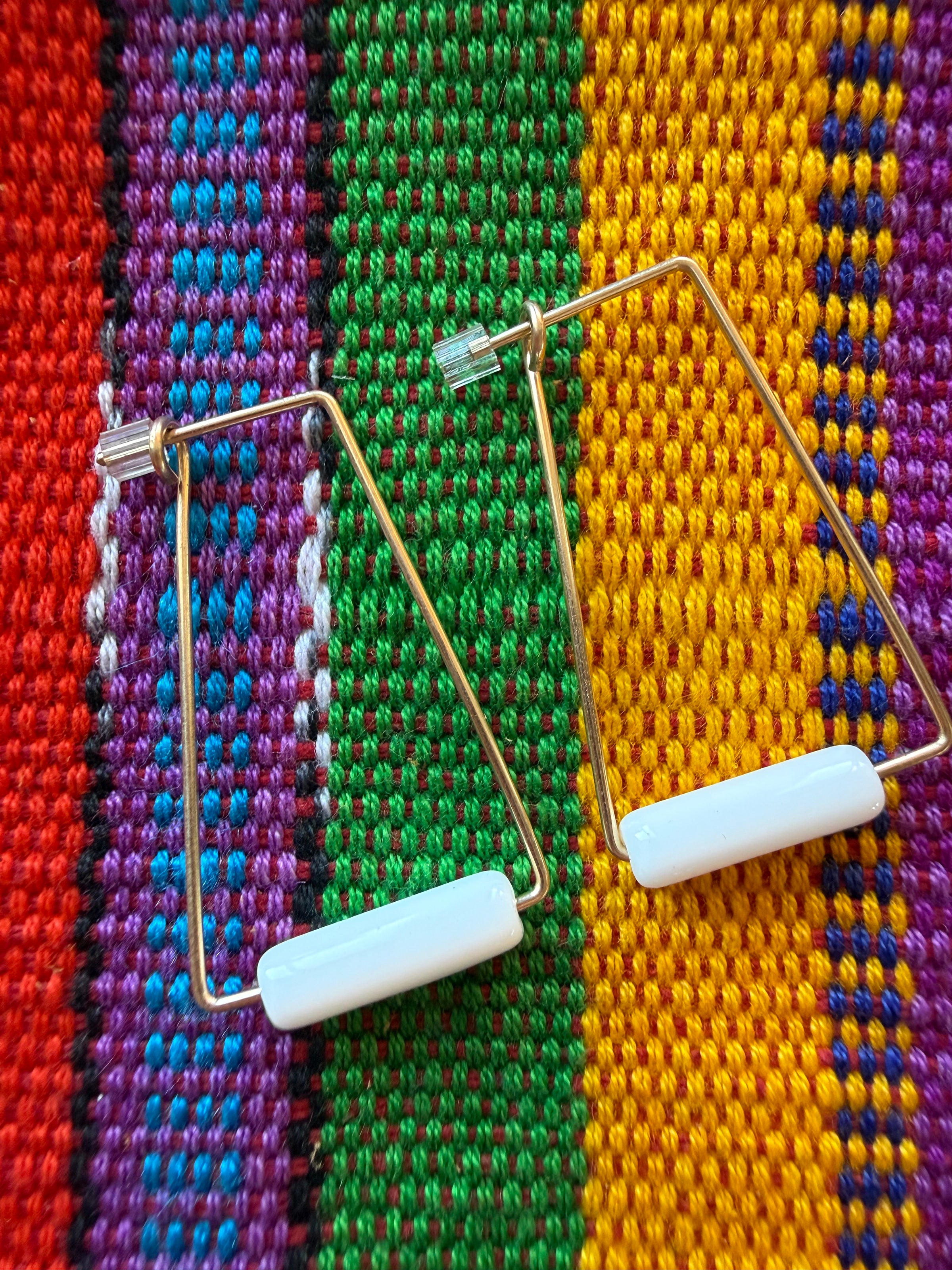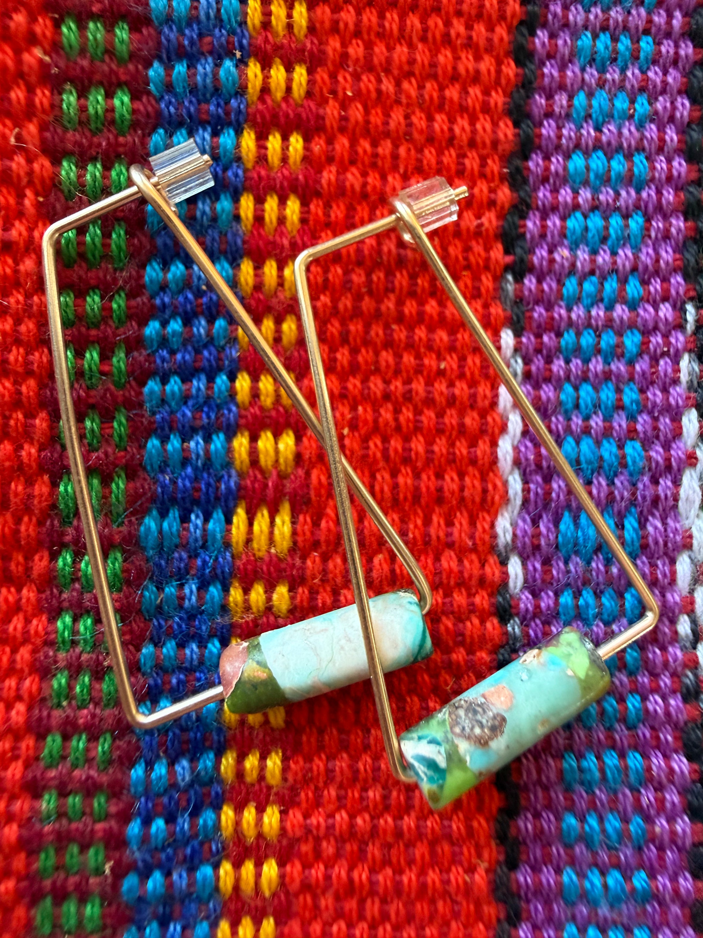 Details: 14k gold filled abstract triangular shaped wire hoop with serpentine bead