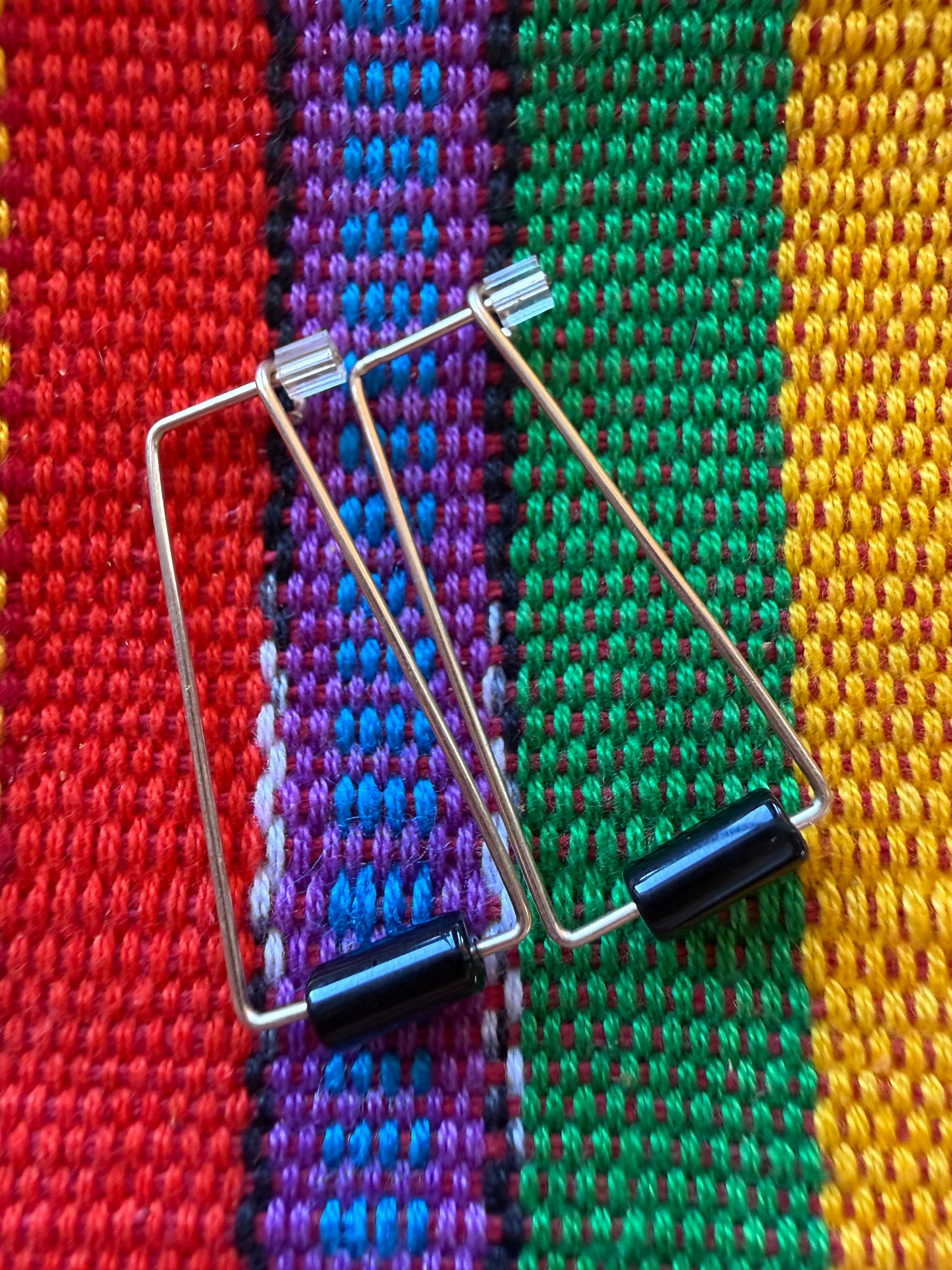 This small, 14k gold filled pair of earrings are sure to be a classic! Each delicate 14k gold filled, triangle hoop is adorned with a small cylindrical, serpentine bead. Add to any dressy or casual outfit for the perfect touch!
