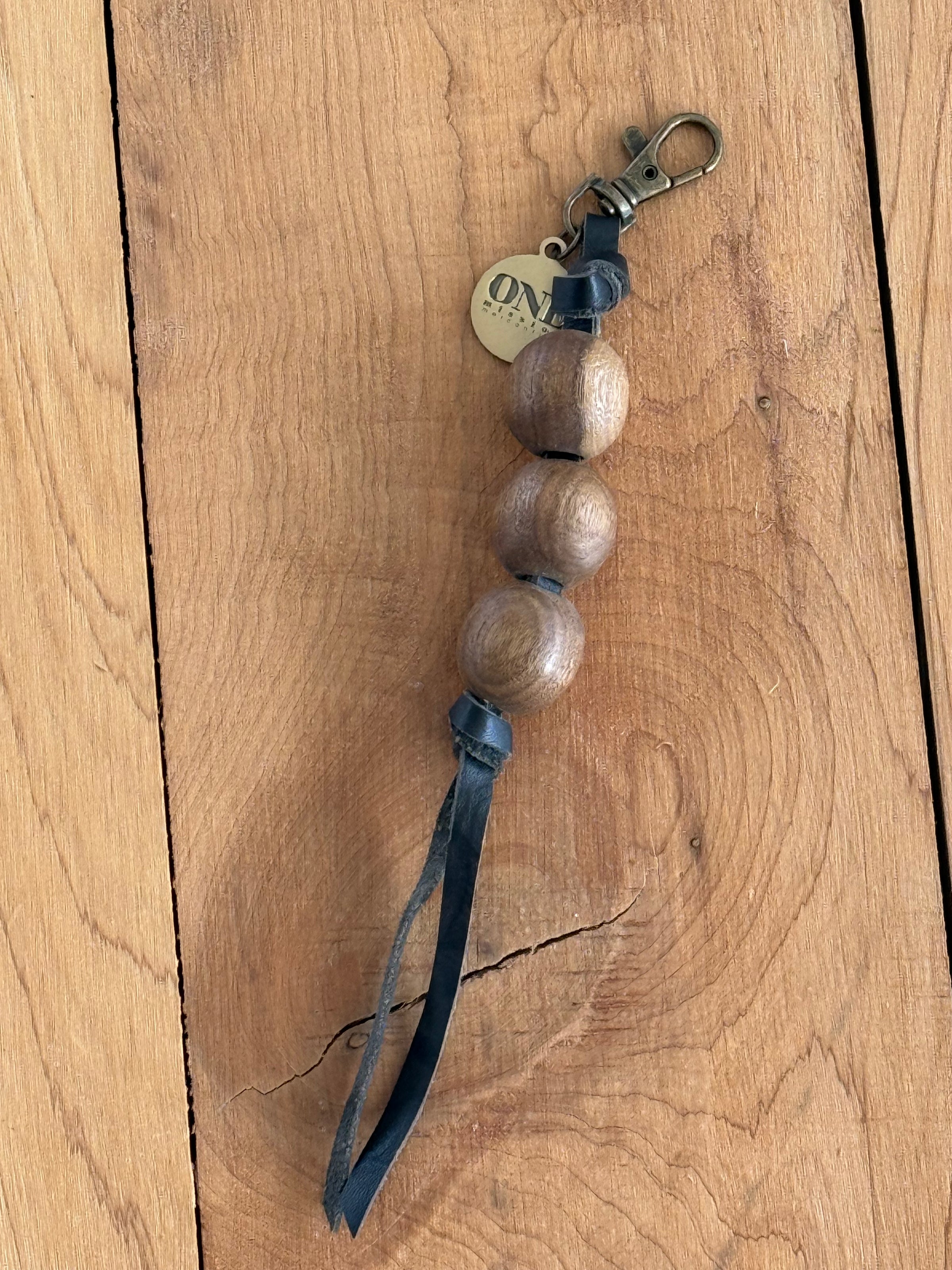 Made with scrap Claribel leather and hand-carved Laurelwood, this beautiful accessory will compliment your handbag, tote or set of keys!